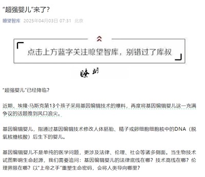 上个月发生了一件笔者认为迟早会发生,但是真的落地之后,依然让人十分无语的事情。因为对婴儿进行基因编辑曾经被判入狱的贺建奎,在海外社交媒体宣布,要在美国甚至是非洲的实验室进行相关研究。