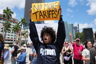 ▲2025年4月,美国民众在迈阿密街头抗议美国关税政策。