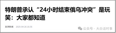 特朗普现在颇有一种想从俄乌冲突里抽身离去的感觉,完全没有竞选时豪言要24小时结束俄乌冲突的模样,反倒是说24小时结束俄乌冲突只是开玩笑的。