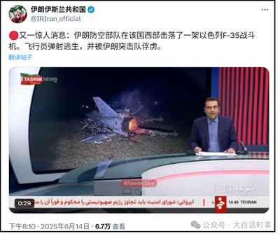 然而,直到我晚上写文章的时候,伊朗方面仍然没有放出击落F35飞机的实锤证据。以色列方面倒是否认了,据《以色列时报》6月13日报道,以色列国防军否认了伊朗国家媒体关于以色列F35战机被击落的报道。当然,以色列否认,也不代表真的没有。但这就需要伊朗方面放出实锤证据了。