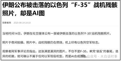 不过,这里也可能存在自黑式洗白的可能性,就是故意丢一张一眼假的AI图,然后通过辟谣的时候,把可能真的击落F35的消息给否定了。