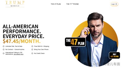 其次,“特朗普移动”套餐服务即“The 47 Plan”,资费为何每月“47.45”美元?懂的都懂,今年“二进宫”的特朗普正好是美国第47任总统,而45美分又正好对应特朗普曾任的第45任总统身份。