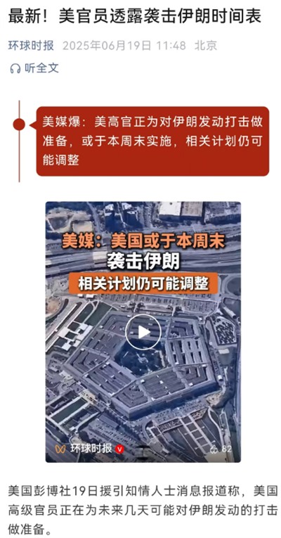 但这5枚泥石弹也没白打,因为19日中午的时候美国官方宣布未来几天就将亲自下场打击伊朗,时间可能是本周末。
