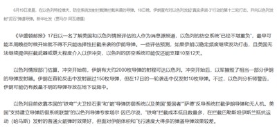 高超导弹拦不住也就算了,连普通导弹都大量拦截失败,说明以色列的拦截弹已经明显不足了。