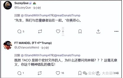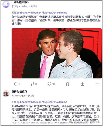 但现在,在特朗普自家社交平台,跟爱泼斯坦无关的帖子里,发表支持特朗普的言论,都会被很多MAGA攻击。