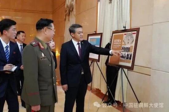 来宾们观看了《守护和平,命运与共——维护世界和平的中国军队》主题图片展和《中国军队》《守护》等视频,热烈祝贺中国人民解放军建军98周年,祝愿中朝两国发展和中朝友谊不断取得新的成就。