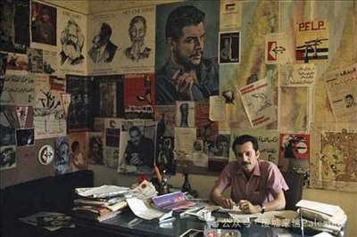 格桑·卡纳法尼在他的《目标》周刊办公室(图源:巴勒斯坦海报计划)