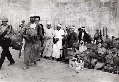 英国冷溪部队正在押送参与起义的阿拉伯人(1938年)