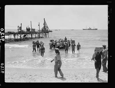 犹太岸边工人在特拉维夫码头卸水泥(图片来源:国会图书馆)