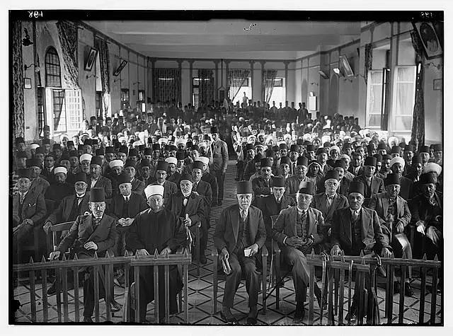 1936年,阿拉伯高级委员会集会反对英国在巴勒斯坦的政策