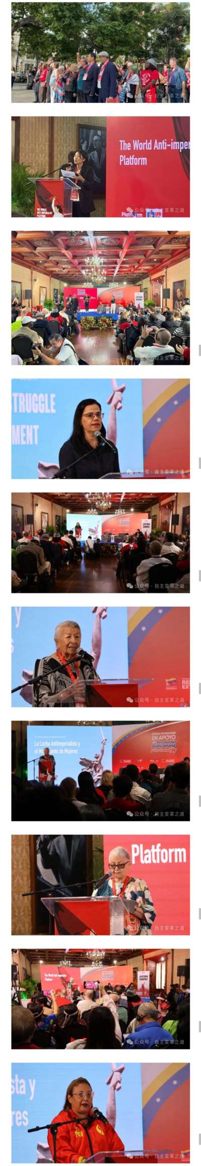 首位发言的前委内瑞拉全国代表大会第一副主席、现西蒙·玻利瓦尔研究所所长布兰卡·埃克豪特强调:“我相信,为了对抗帝国主义、赢得这场斗争,女性必须发挥主导作用。这是我们的根本任务。真正的女权主义必须是反帝国主义和反资本主义的。因为女性是最先沦为奴隶、被当作财产对待的群体。因此,从资本主义中解放出来、从帝国主义中解放出来,也就是从几个世纪、几千年来将我们束缚在不平等和不公正中的父权制中解放出来。”