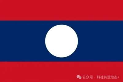 老挝人民民主共和国的国旗是深蓝色的底,红色的边和白色的满月。国旗的宽度为长度的三分之二。两条红边宽度各为深蓝色底宽度的二分之一。白色月亮的直径为深蓝色底宽度的五分之四。