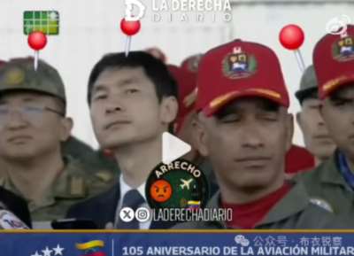 11月29日,在与美国的军事紧张局势日益加剧的情况下,在委内瑞拉阿拉瓜州马拉凯的解放者空军基地看到了到委参会的多位中国军官。