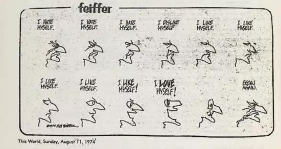 在上文提到的费弗(Feiffer)漫画中所呈现的,正是汤普金斯对于批评与自我批评——也即辩证唯物主义——的理解:它是一种具体地被感受和体验的过程,植根于主观层面。尽管漫画的主体聚焦于一个“我”,但我们也许可以将新左派整体描述为一种集体性地穿行于这些情绪之中的旅程——一种在群众层面、在全球尺度上的“向爱敞开”。正如乔治·卡齐亚菲卡斯(George Katsiaficas)在继承赫伯特·马尔库塞(Herbert Marcuse)的基础上所提出的那样,那个时代的“爱欲效应”催生了一种超越了正式政治革命与经济结构的革命观——它深入到日常生活的每一个细胞层面,渗透至人们日常思维与意识的习惯。简而言之:它是一场文化革命。