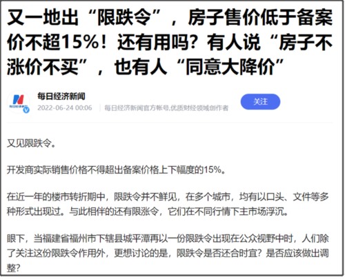 但像有的地方出台的限跌令,要求开发商实际销售价格不得超出备案价格上下幅度的15%。