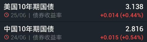 我们一组一组看,先看双方10年期国债的收益率对比。