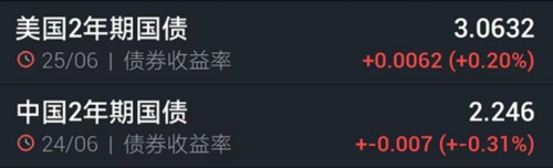 美国2年期国债是3.06%收益率,我们则是2.24%,二者倒挂幅度进一步扩大到81个基点。