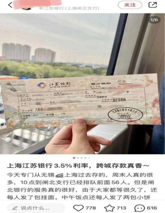 江苏银行在江苏区域内的三年期定存利率只有3.1%,而在上海就高达3.5%。为此近期江苏很多地方的存款客户,纷纷赶往上海去存钱,甚至不惜坐高铁赶在银行开门之前去排队取号。驱动他们这样做的原因只有一个,那里的利率比本地的高。据网友推算,虽然只有0.4%的利率差距,但真金白银算下来可不少。比如,以3年定期为例,如果是10万元,上海要比江苏多1200元,20万是2400元,50万是6000元。