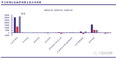 2023年1-6月,票据融资大幅减少,合计减少8924亿。对市场观察而言,这个数据是很好的数据,表明企业贷款结构正在优化。银河证券最近一期分析也讲到,“企业部门贷款投放增加,票据冲量减少,结构偏优。”