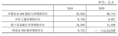 2019年,中国企业500强合计净利润为38,924亿,其中工农中建四大行净利润合计9,784亿,占500强全部净利润的25.14%。2020年,中国企业500强合计净利润40,712亿元,其中工农中建四大行净利润合计9,957亿元,占500强全部净利润的24.46%。