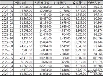 分项很多,大家没必要记。从新增数据看,这些分项里面,最重要的是人民币贷款、企业债券和政府债券。下表是2021年以来,这三项合计占新增社融的比例。除个别月份外,三项合计占比都在9成以上。某些月份比例超过100%,因为其他项融资可能是负数(该分项融资减少)。