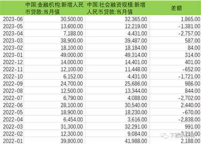2023年1-6月,居民部门新增人民币贷款合计28000亿元,但是中长期贷款仅有14600亿元,占比为52.14%,远低于历史水平。这说明居民对房地产市场极度悲观,贷款买房的意愿快速下滑。同时,短期贷款明显上涨(不论是绝对数还是占比),其中有一个重要原因,就是新房和存量房的房贷差。由于新房和存量房出现明显的房贷差,部分居民通过经营贷、消费贷的方式把钱套出来,置换之前高息房贷,使得短期贷款激增。