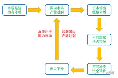 贸易战和各种其他摩擦,反过来作用于我国出口市场,导致我国出口下滑,这又进一步反作用于整个国内市场,加深我国产能过剩的矛盾。