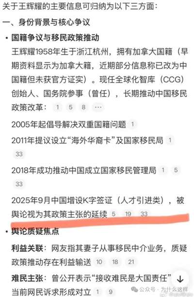 这位叫王辉耀的,其人针对移民具有“一揽子‘的研究和见解,其人对于推动中国移民管理局(原名中国出入境管理局)的建立起到了关键作用,针对国籍管理,其人支持双重国籍,并且数年来奔走不息。