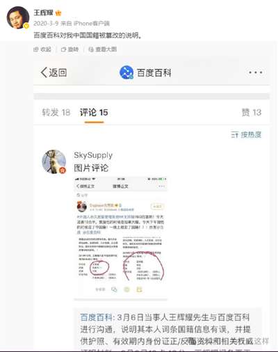 这一点,我要吐槽一下百度,要知道,百度的李彦宏曾经被这位创始人多次力挺为中国海归的领军人物,百度就对于这样一位知遇之人如此不严谨,还需要本人专门责成后才去更改国籍。