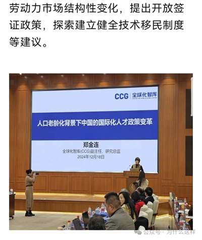 2024年,针对中国老龄化提出所谓的国际化人才变革政策,也就是推动中国针对西方开放技术移民。