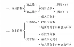 至于资本输出输入的借贷,较为复杂。就一定期间观察其输出入之时,输入的项目,由借入的资本、收回的资本及放款资本的利润和利息等三项构成;输出的项目,由放款的资本、被收回的资本及借入资本的利润和利息等三项构成。