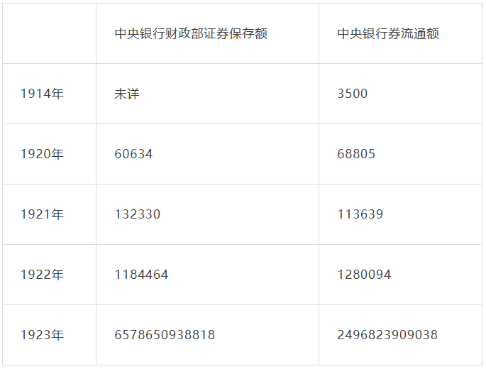 德国在第一次大战时期及战后的流通量,达到令人非常可惊的数字。列表如下: