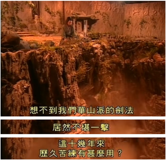 令狐冲在思过崖上练剑,无意间进入了一个神秘的山洞,发现洞内的石壁上刻着“尽破五岳剑法”的招式。