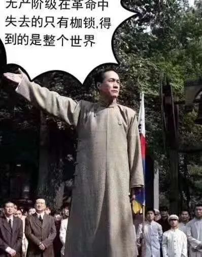 陈独秀在发动新文化运动时,对群众演讲说:“工人阶级在这个革命中失去的只是锁链,他们获得的将是整个世界。全世界的工人阶级,联合起来!”