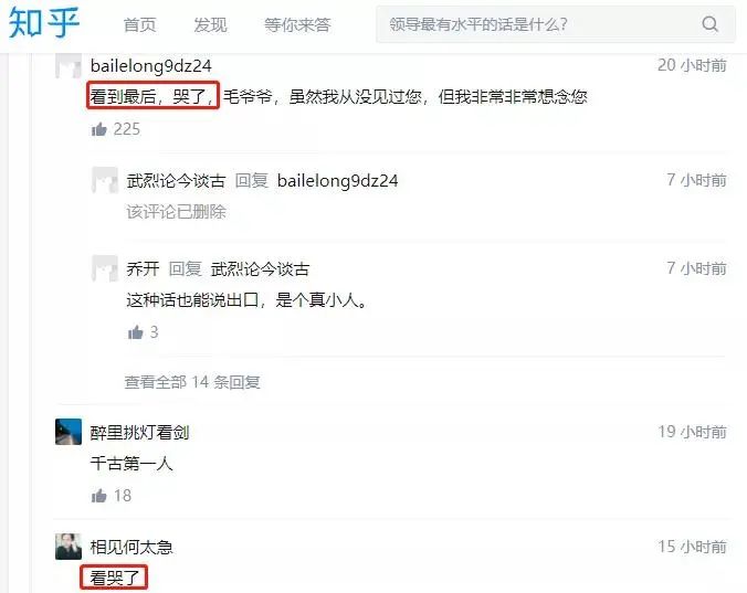 还有更多的人写道:“看哭了”、”眼睛湿了”、“我在重读《毛选》”……