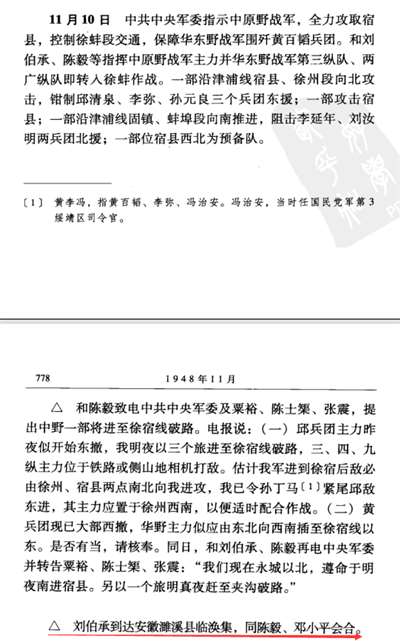 (11月10日)刘伯承到达安徽潍溪县临涣集,同陈毅、邓小平会合。