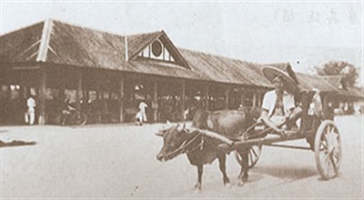 拉者在廿世纪初于古晋甘蜜街兴建了菜巴刹,让新安农户到此销售他们耕种的蔬菜,这是在巴刹落成不久后所拍摄的档案图片,图中尚可看到如今已几乎绝迹的牛车,正大摇大摆的漫步于街头。