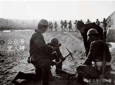 抗日人民武装正在埋地雷。阜平,1943年 石少华 摄