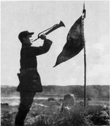 斯诺拍摄的经典照片《抗战之声》,小号手为红一方面军营教导员谢立全。这张照片曾出现在《红星照耀中国》中文版封面上。