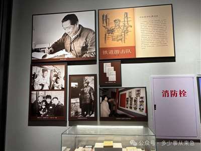 步行不远处,路边就竖起了一块展板《两雄遇难》。看到曾经熟悉的画面,戳进孩子们心里,谙熟地找到最佳位置,不禁让人心中一凛。哦,这是铁道游击队故事中一个重要情节,也是孩子们儿时酷爱的十册《铁道游击队》系列连环画中的第七册。这本书的内容,是抗日战争时期鲁南地区为背景的一个打日本鬼子的故事。为解决部队冬衣问题,执行夺取日军三辆满载棉布和西药货车的任务。日军扫荡导致山区被服厂损毁后,队员林忠、鲁汉在动员群众拆除敌军炮楼时遭遇包围,最终与队员共同牺牲。这一个英勇的故事被绘画成了一本连环画,看着这副巨大展板,脑海里禁不起浮现出一帧帧泛黄的旧时光。那个时候,孩子们还在上小学,对打仗的革命故事,怀着深厚朴素的革命感情,日本鬼子的凶残给中国人民带来的痛苦,就是一种会痛的苦,就是烈火的窑,就是一辆又一辆的车,轧过孩子们的心和孩子们的头。阶级仇民族恨,强烈的爱憎分明,油然而生,自然《铁道游击队》成为孩子们急切要拥有的画册。