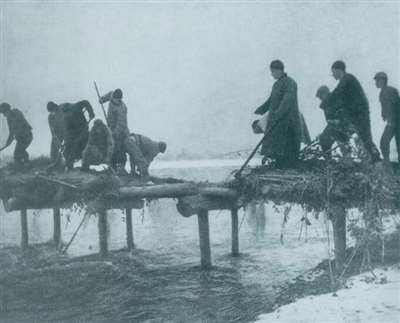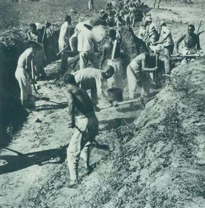 冀中人民在挖沟掘道改造地形,以坚持平原游击战争