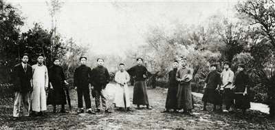 ◆1920年5月,新民学会部分会员在上海留影,左七为毛泽东。