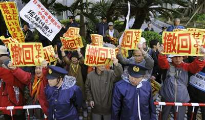 2010年12月17日,日本首相菅直人到访冲绳县政府时,当地居民示威抗议