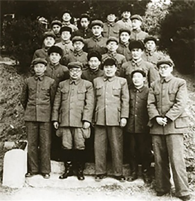 ◆1951年7月,朝鲜停战谈判在开城开始举行。图为参加谈判的中国代表及工作人员在板门店合影,前排左二为李克农。