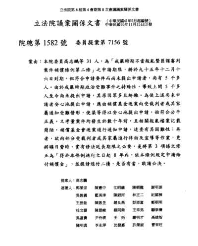 “戒严时期不当叛乱暨匪谍审判案件补偿条例”相关文书