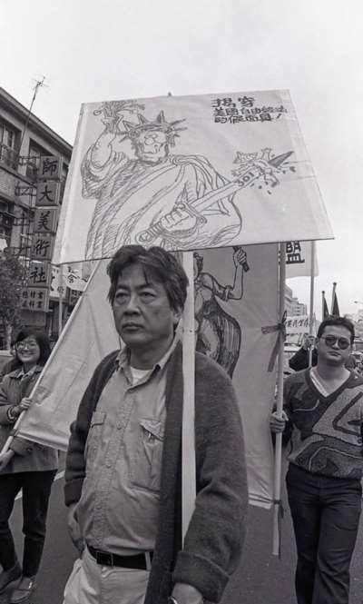 1988年台湾农民反对美国农产品进口,陈映真上街参加游行 | 图片来源:公众号“现代中文学刊杂志”