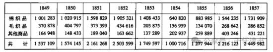 1842年条约在促进英国对华出口贸易方面,没有发生丝毫作用 ,这可以从下表看出 :