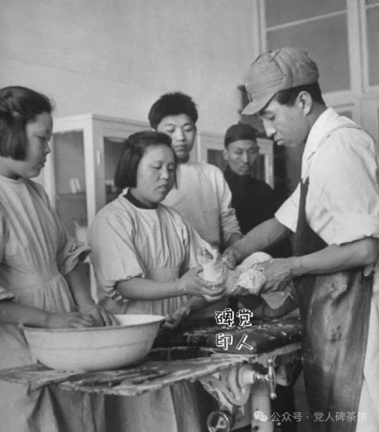 1946年4月,张家口医院,医生为患者打石膏。(美)拉克斯 摄