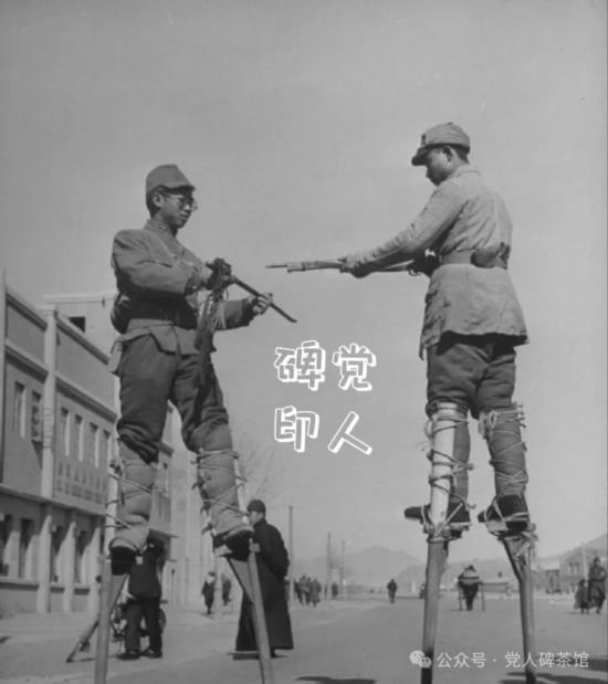 1946年春节,张家口,高跷表演日寇投降。(美)拉克斯 摄