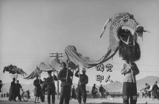 1946年春节,张家口,舞龙的群众。(美)拉克斯 摄
